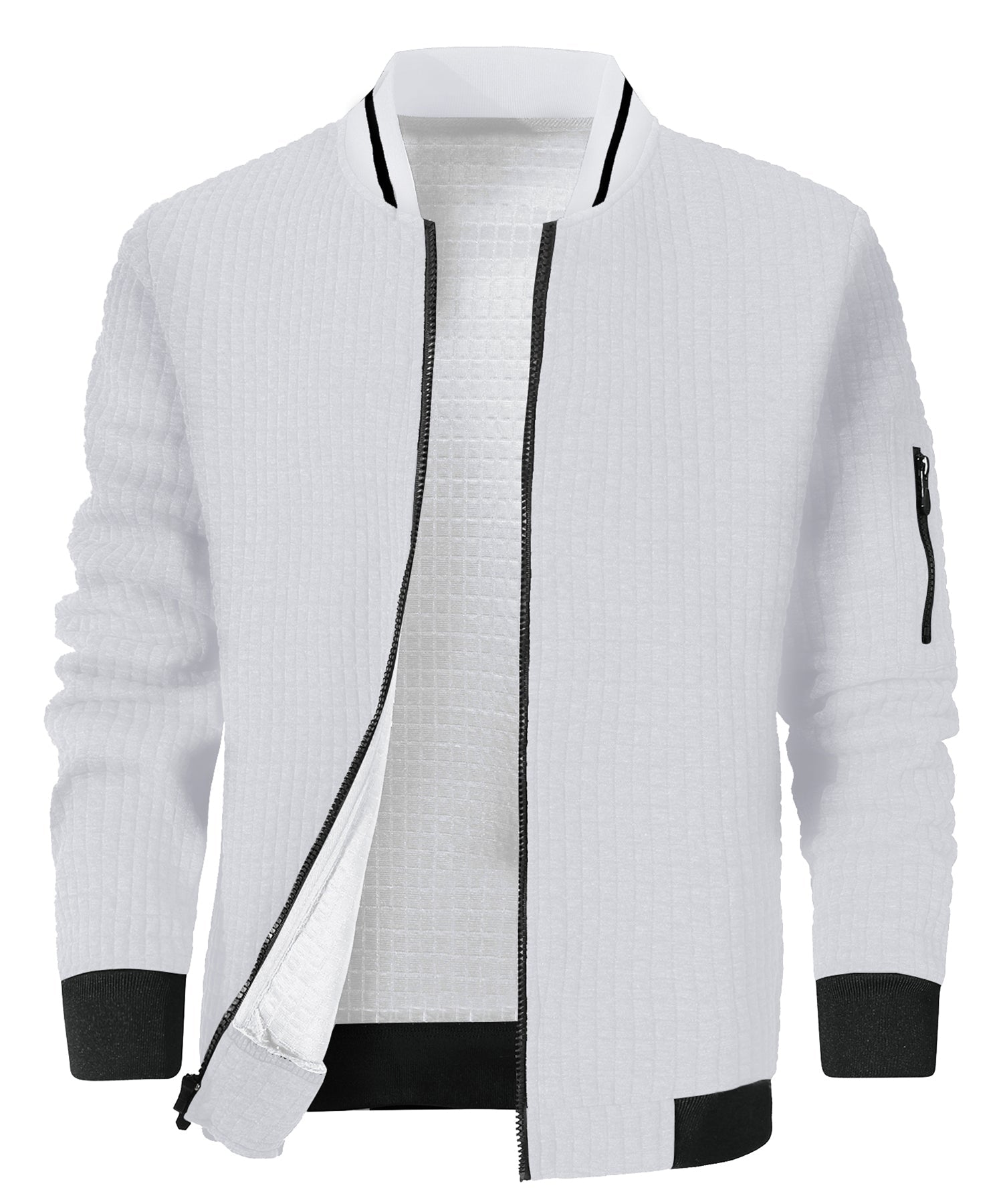 Restez élégant, affûté et prêt avec le Urban Stealth Bomber, conçu pour ceux qui apprécient la forme et la fonction à parts égales. Avec un design minimaliste et fabriqué avec un mélange de coton et de polyester, cette veste légère vous garde au chaud et prêt pour toute aventure urbaine. Le zip intégral à l'avant et la poche zippée discrète sur le bras gauche garantissent la sécurité de vos essentiels, rendant cette veste parfaite pour les trajets ou les opérations en déplacement.