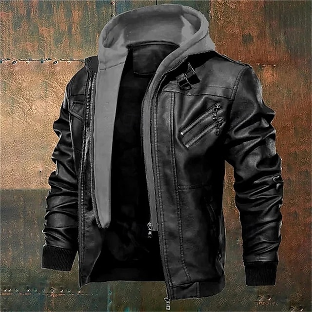 Geschlecht:Herren,Oberbekleidungsart:Motorradjacke,Bikerjacke,Kunstlederjacke,Anlass:Ausgehen,Urlaub,Täglich,Saison:Winter,Herbst,Funktion:Winddicht,Warm,Stoff:Polyester,Kunstleder,Verschluss:Reißverschluss,Stil:Lässig,Klassisch,Modisch,Oberbekleidungs Länge:Regulär,Muster:Einfarbig,Design:Tasche,Ausschnitt:Kapuze,Stehkragen,Ärmellänge:Lange Ärmel,